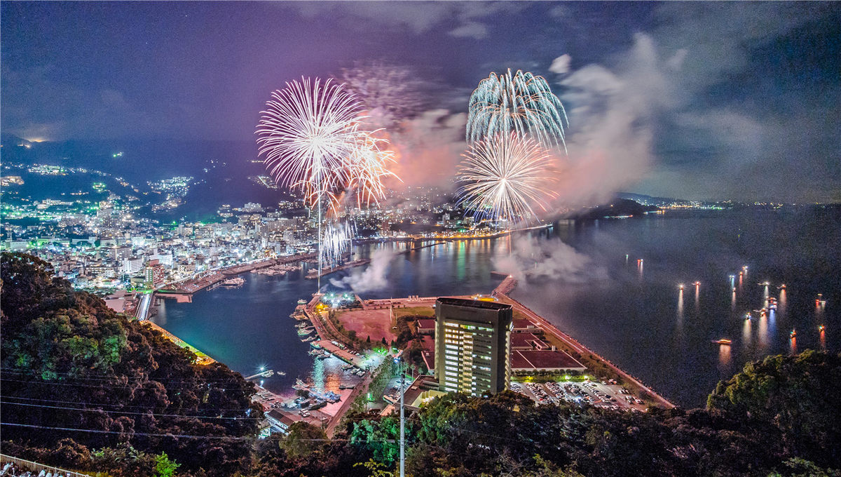 在热海,花火大会才不只是夏天的专属福利。这里全年会举办十数场海上花火大会,三面环山的地理位置利于花火现场的音效展现,而这也是让无数人对热海趋之若鹜的重要原因之一。