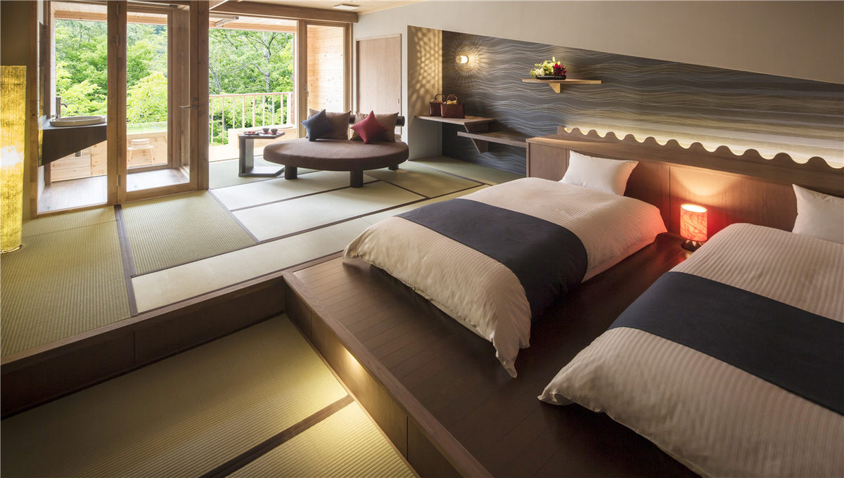 酒店由著名建筑师隈研吾操刀,整体设计彰显了对自然与环保的无限热衷,细节处可见低调、奢华的日式元素。