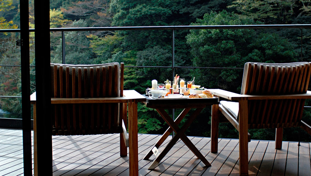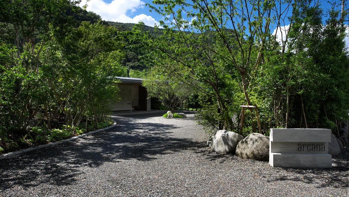 这次旅行我住在Arcana,一家极具特色的温泉度假酒店。本以为这里距东京很远,没想到乘坐新干线快车一小时就到了。一路上,我脑袋里一直充斥着小时候和父母一起去温泉旅馆的回忆,想起旅馆门口的小竹林和蔼谦恭的欧巴桑;想起那温润的木质地板,小小的榻榻米房间,小小的电视;还有想起小小的我不得不与陌生人一起洗温泉时的羞怯。而这些回忆却被Arcana给我的第一感觉统统击碎了!Arcana一进门的大厅很简洁,简洁的让我感到惊诧,浅灰的石子,实木的墙面,没有门童迎接,她就像一个天然去雕饰的女子静静地等待着你的到来。不过这时候可千万不要抱怨酒店招待不周哦,其实你的一举一动都被隐蔽地“监控”着,再往院子里走几步,就会有人来迎接你,就好似你去到好友别墅,没有任何提示指标,也没有大厅,不许check in贴心的服务员会带你去房间,让你品尝他们事先准备好的热茶和点心……