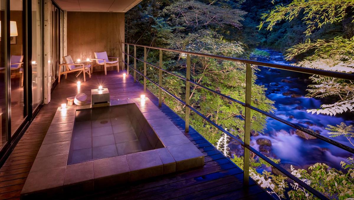 这是Arcana最独特的一角!!!每个房间都有它独立的温泉~ 即使从小在日本长大去泡温泉已是家常便饭,但毕竟是和大家一起泡澡依然会感到羞涩。日本的温泉浴与中国洗澡堂是有较大区别的,泡温泉时不能大声说话,不可吃喝,时时要在在意是否又打扰到别人。而Arcana的独立温泉完全避免了这些。我独自喝着啤酒,听着音乐,看着景色漫漫自由的享受着这一刻。大力推荐情侣夫妇一同前往,这绝对是传说中的“鸳鸯浴”哦~ 当然自己前往,一个人安静的享受温泉也不失为人生一大乐事,听乐声鸟声,风声雨声,一对一的感受大自然的美丽。