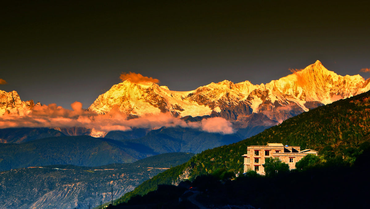 “那一年,磕长头匍匐在山路,不为觐见,只为贴着你的温暖;那一世,转山转水转佛塔,不为修来世,只为途中与你相见;”似乎是不自觉的,谈到梅里雪山,就总想起仓央嘉措的《那一天》。当然,也不曾忘记在电影《转山》里,李晓川为了能够一睹梅里雪山的真颜而脱衣膜拜的那个桥段……也知道,有不计其数的背包客在飞来寺苦等几日,只为看见日照金山的壮观场面。