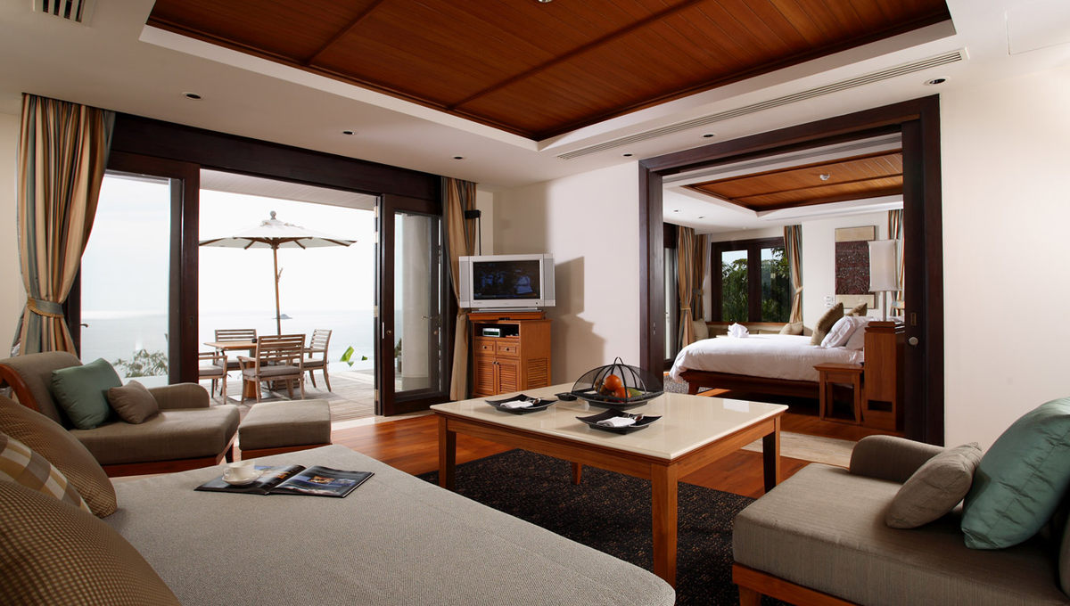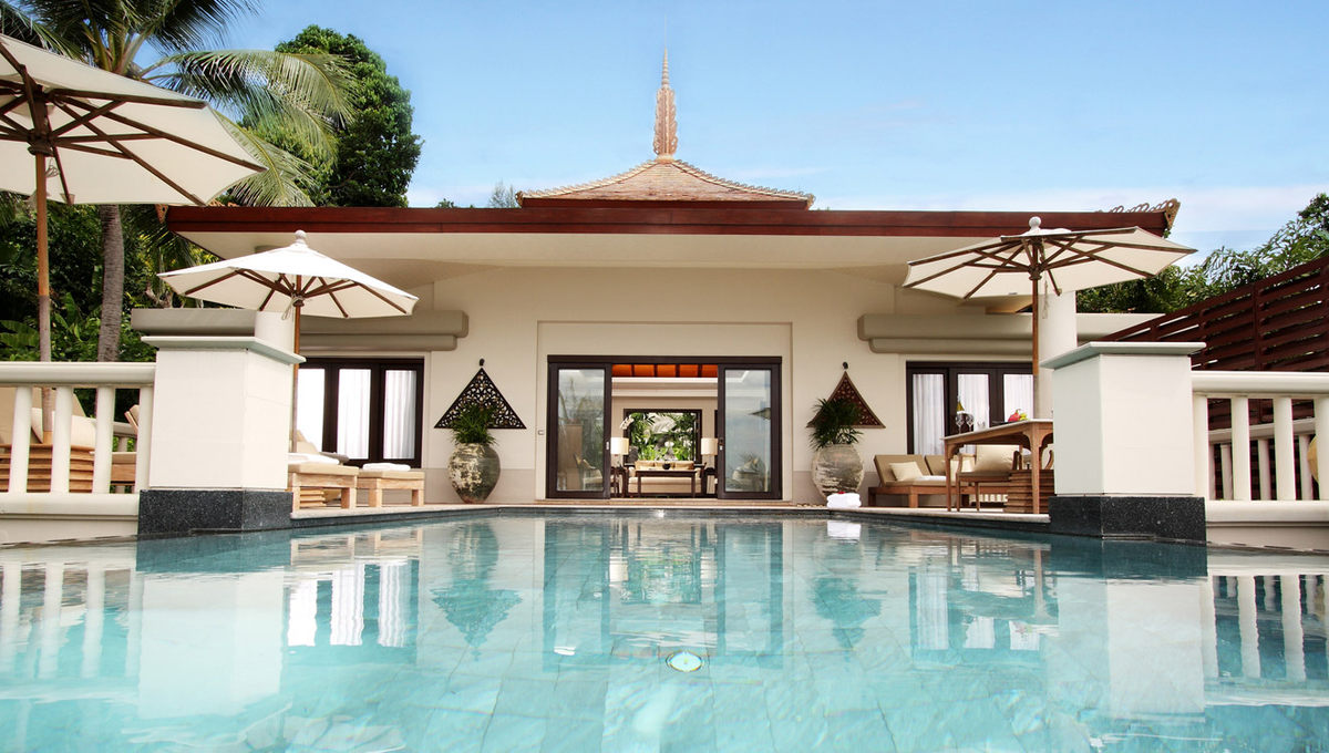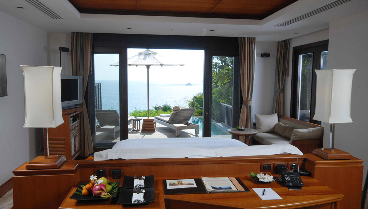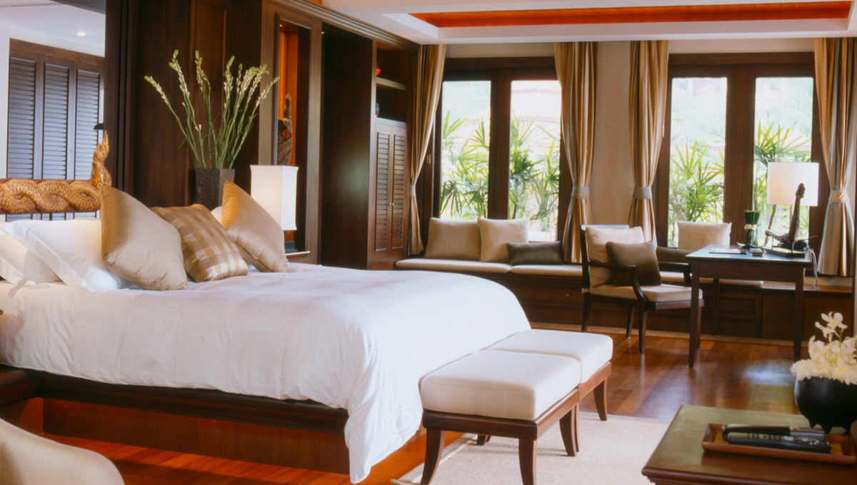 酒店的设计为泰式现代建筑,在保留了泰式传统屋顶坡度颜色等元素上,运用了大量的落地玻璃窗,而内饰物件大都运用米黄等温暖淡淡的颜色。整体感觉很像 Aman – 当地建筑形式的低调奢华,所有的设计都是意料之中,舒服至极而绝无突兀之感。这就是大多数人在一定年龄地位后希望的没有惊奇的熟悉感吧!