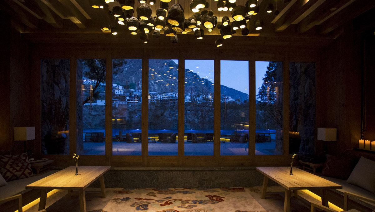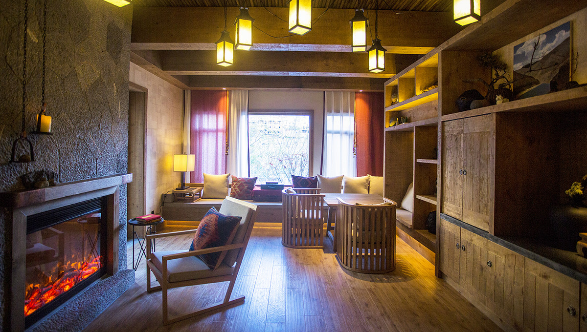 主楼宽敞的大堂迎接来自五湖四海的宾客,倚靠在以星空为天幕的露台上可将江畔风情一览无遗。酒店的无边泳池坐落于波涛滚滚的金沙江不远处,泳池周边环绕着高耸的山脉,零星点缀着阡陌纵横的农场和恬静温馨的小木屋,不远处还伴有一些禅声回荡的小寺庙。暮色降临后,各种活动也开始悄然拉开帷幕:以星空为衬的户外大荧幕电影上演着各色人间喜剧,亦可围坐在壁炉周围倾听侃客谈笑风生,或在Café LUX*观摩当地咖啡师现磨芳醇柔润的咖啡。