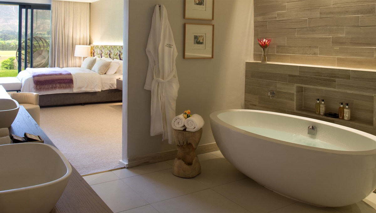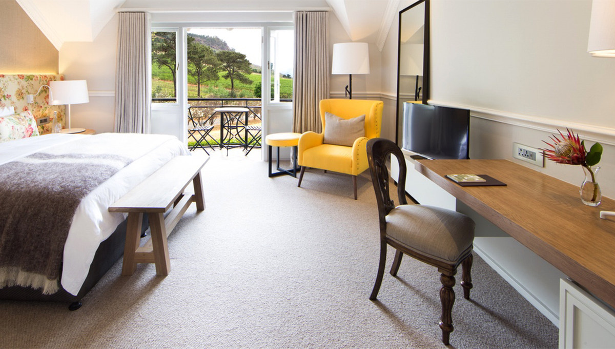 而这间坐拥南非西开普敦最美景致、以美食、红酒而闻名的庄园酒店——Mont Rochelle,便是理查德·布兰森新晋入手,后经改造重组,于2014年9月重新开门面世的得意制作。