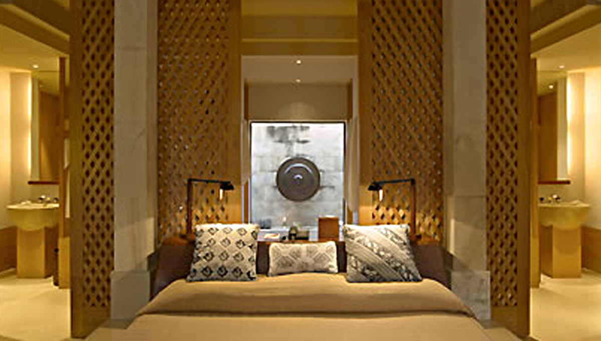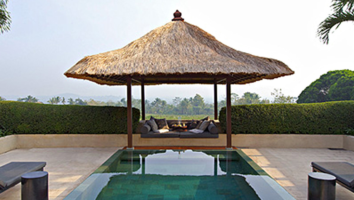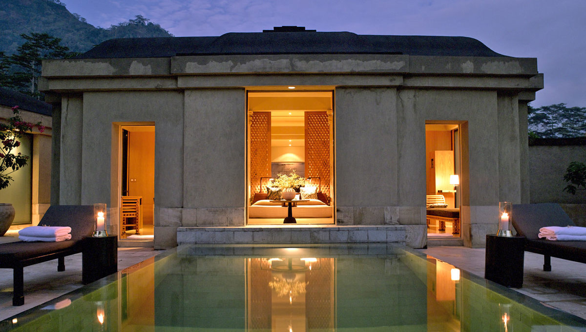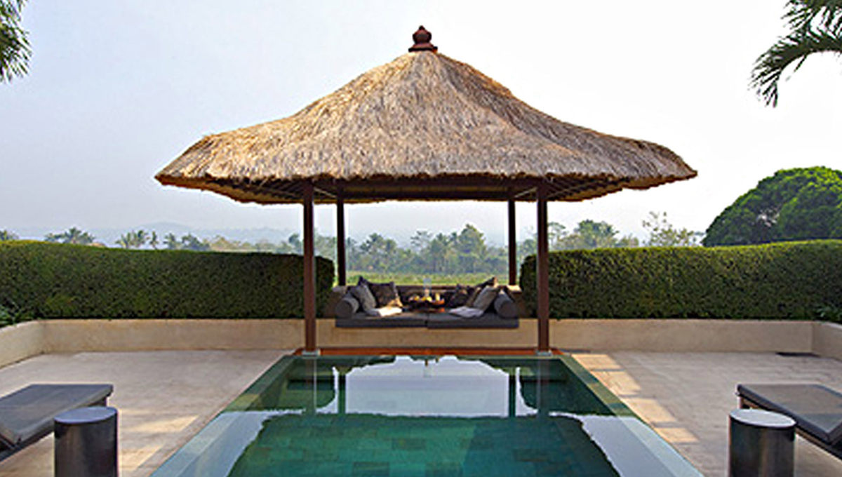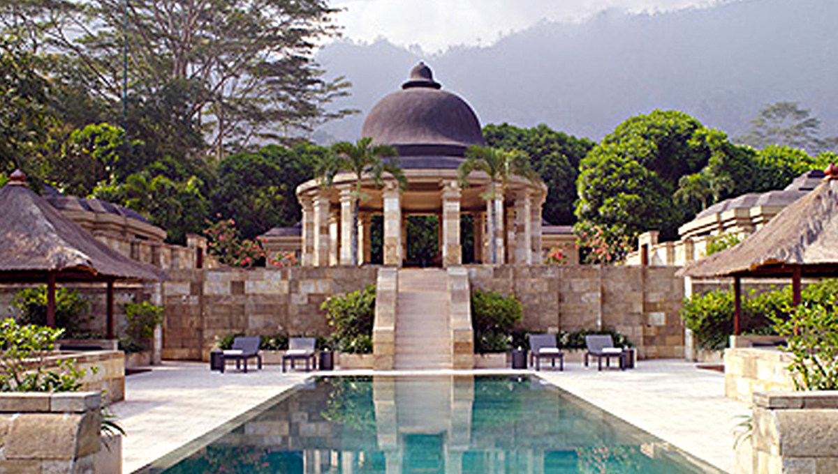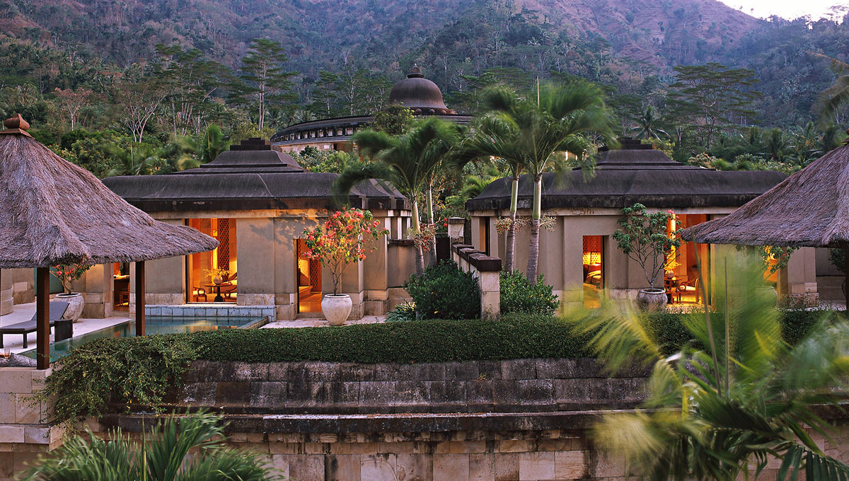 位于爪哇岛中部的安缦吉沃离印尼最重要的古迹世界文化遗产婆罗浮屠咫尺之遥,坐落在2公里开外的曼诺山之上。“婆罗浮屠”(Borobudur),源自梵文,就是“建在山丘上的寺庙”的意思, 相传是为供奉佛祖释迦牟尼舍利子而建的。说安缦吉沃是印尼日惹设计最为独特的酒店也不为过,因为它简直就是为了婆罗浮屠而存在的,它像个诗人一样守望着婆罗浮屠。设计师Ed Tuttle从这座历史遗产中汲取创作灵感,模仿佛塔的结构和巨石迭起的手法,外围俩花池环绕。外方内圆、交错镂空的方形、菱形石灰石砖墙, 打造出宛若置身水中央的华美宫殿;层叠递增的结构,又与四周的深绿发亮的梯田水稻遥相呼应,与大自然达成了完美相融。