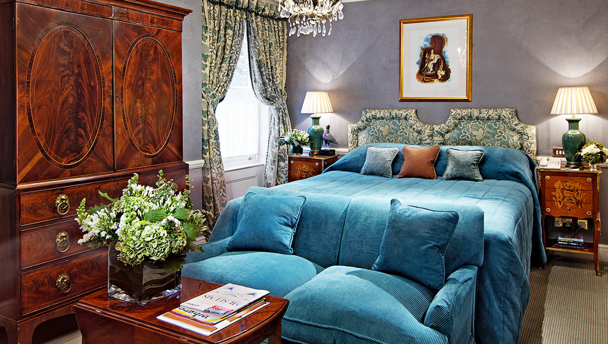 作为一家精致小巧的五星级酒店,艾格顿不以宽敞空间、恢弘场景取胜,引人眼球的只有一个“精”字。在这里,你绝对找不到两间完全一样的客房,每个房间的设计都是独一无二的。客房整体的风格是舒适优雅的英伦风情,从窗帘床幔和吊灯的统一搭配就能看出来设计者的匠心独运,时而夸张时而素雅的家具用色也让你难以抉择,是热情似火的葡萄紫红还是格调优雅的水蓝淡绿?设计者不止用心二字可以形容,从吊灯到壁画都是精心搭配的,再点缀上酒店收藏的毕加索、马蒂斯等诸位艺术家的艺术创作,才有我们所见的风情各异的客房。暖烘烘的壁炉,馨香四溢的鲜花装饰和茶几桌案上摆放的时令果盘,活脱脱一处温馨的英伦人家。