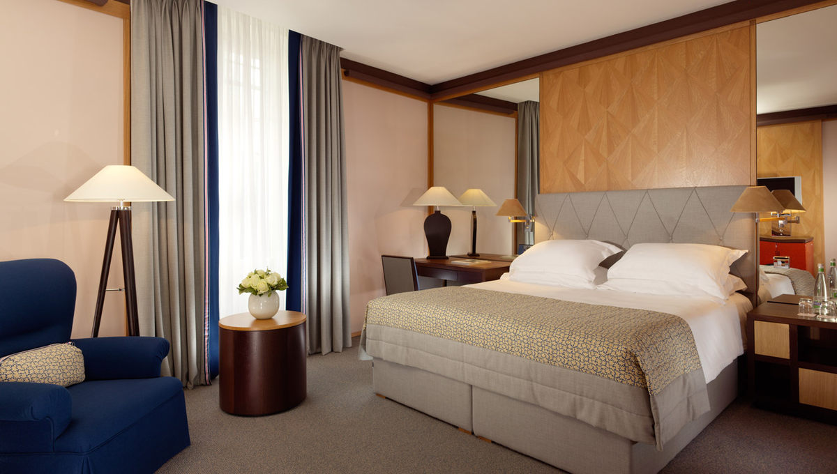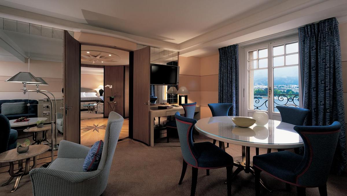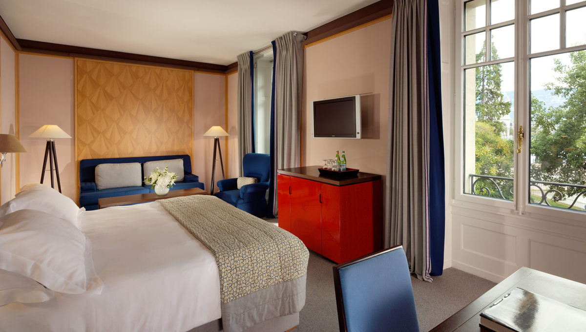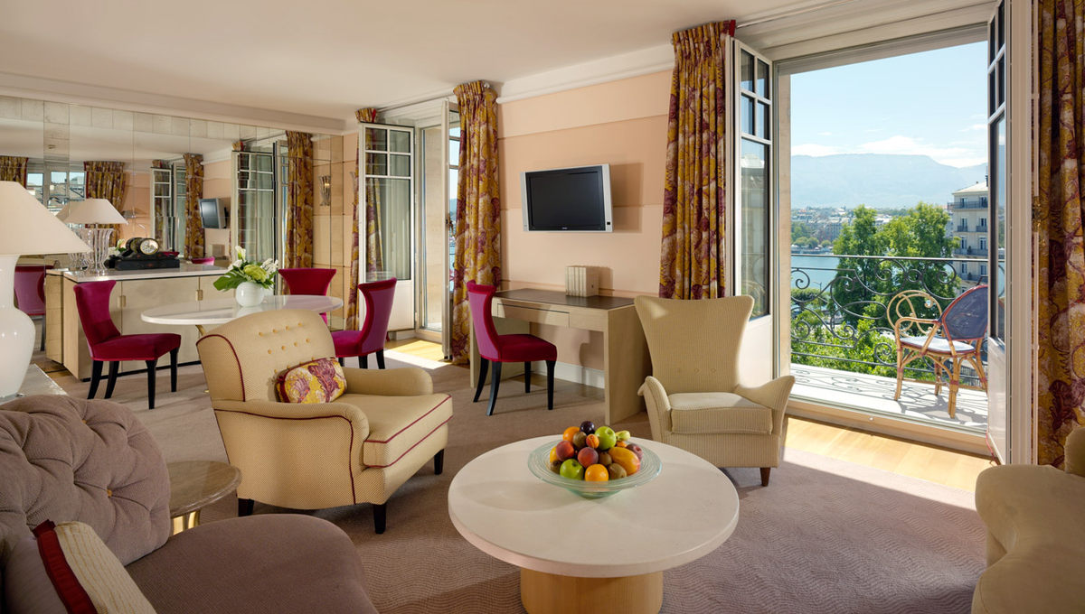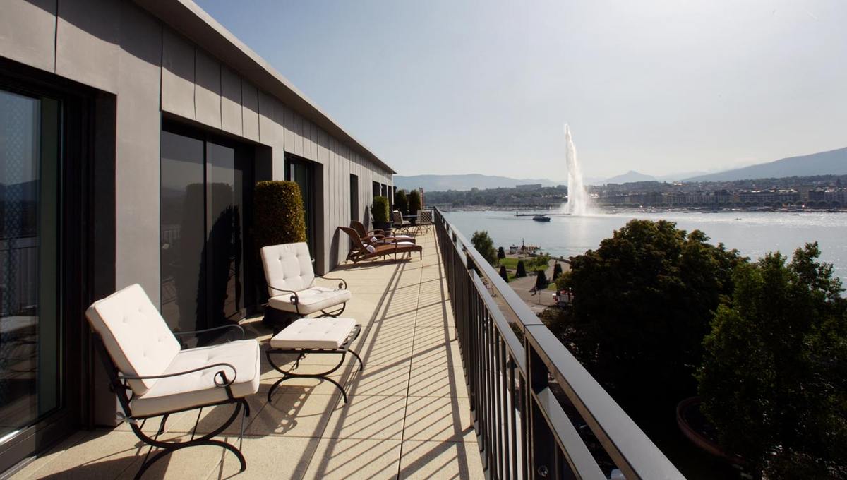 这里要隆重介绍一下皇室Armleder 套房,来到7层,享受难得的日内瓦全景吧。套房占地2500平方英尺,有三间卧室和有一个1000平方英尺的能看到日内瓦湖全景的露台,以及一个真正的壁炉的和防弹落地窗。套房的每个细节均经过严格考究,每一处家具摆放都和谐自然。来到私人露台上,日内瓦湖的全景就在你面前徐徐铺展,而以阿尔卑斯山做背景的大喷泉则更显婀娜多姿。