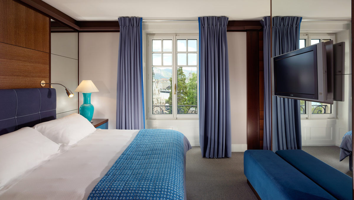 酒店在日内瓦商业区的中心位置,Rhône湖的北面,离日内瓦湖仅咫尺之遥。从酒店内你就可以看到最著名的世界上最高的大喷泉(Jet d'Eau)及著名的阿尔卑斯山。酒店距离老城区仅有几步之遥,距离著名的花钟(Flower Clock)和欧洲联合国总部的也超近,如果你想去日内瓦最夯的餐厅和一些奢侈品商店,从酒店出发也十分方便。
