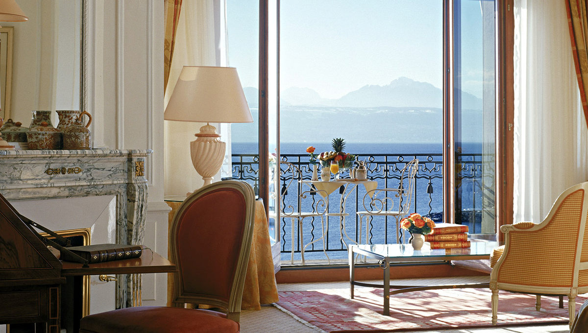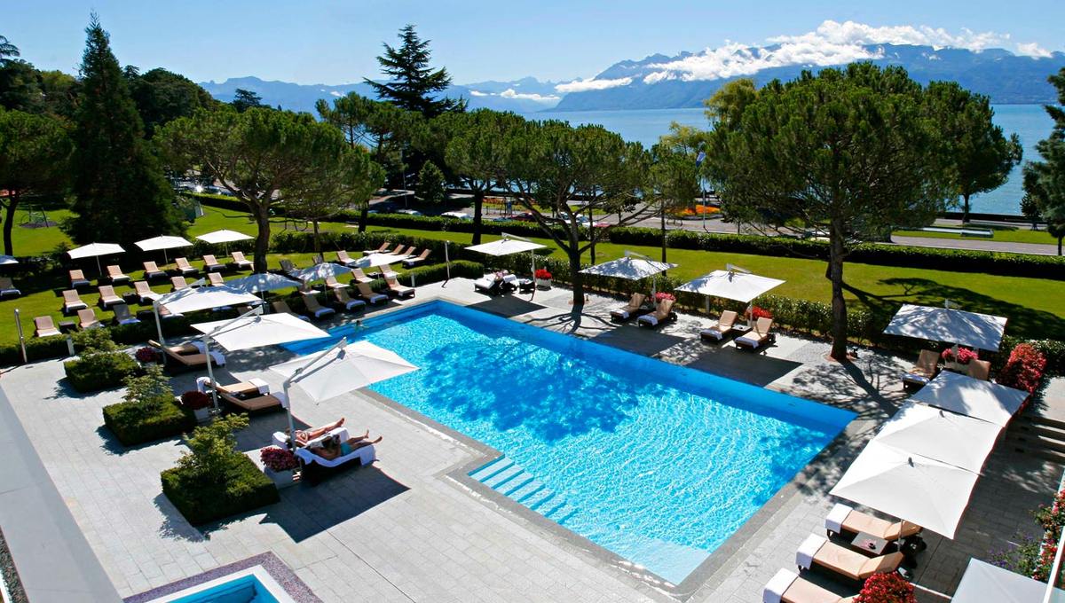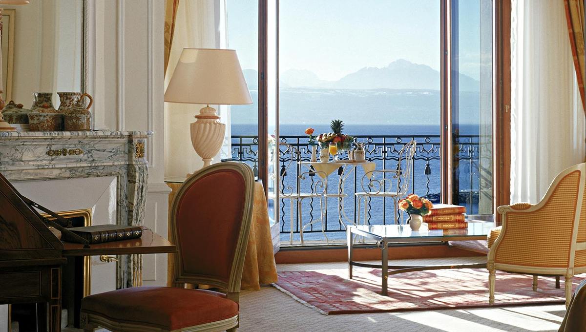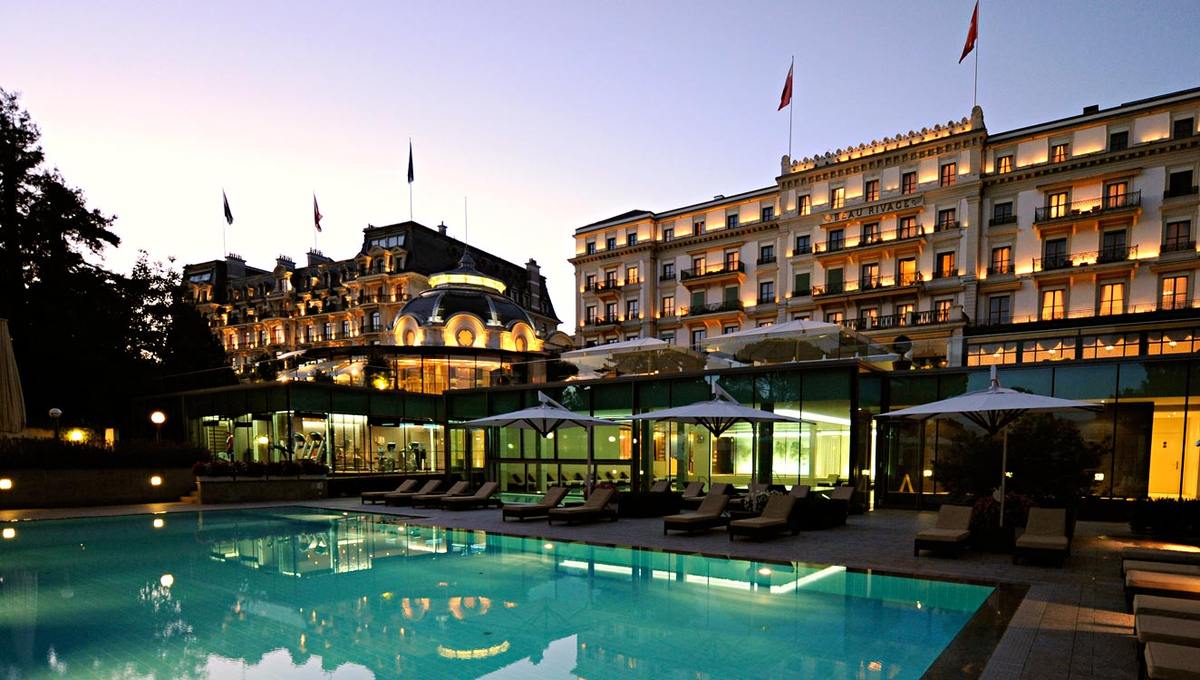洛桑美岸皇宫大酒店 (Beau-Rivage Palace)虽位于城市中心地带,但远离了城市的喧嚣,酒店面对着欧洲最大的湖日内瓦湖并能远眺法国阿尔卑斯山色,四周环绕着面积达4公顷的私家公园,相当独具一格。法国文豪雨果、喜剧影星卓别林、奢侈品大师香奈儿、南非总统曼德拉、约旦国王侯赛因……所有这些历史上璀璨的明星都曾经在酒店的大理石和天鹅绒地板上驻足过。从酒店开始对外营业的1861年开始,酒店的大厅就举办了无数舞会和豪华盛宴。它的环境、房间的布置和服务质量在当时就已经享有国际盛誉了。