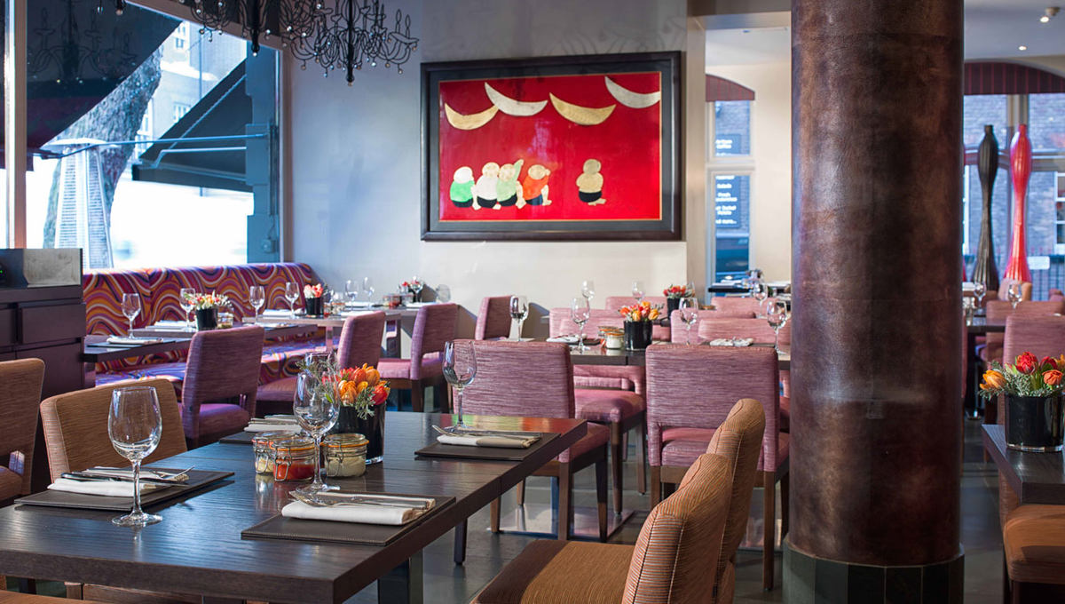 | 酒店的酒吧兼餐厅环境现代而时尚,供应时令英式菜肴、优质葡萄酒和鸡尾酒。 |
