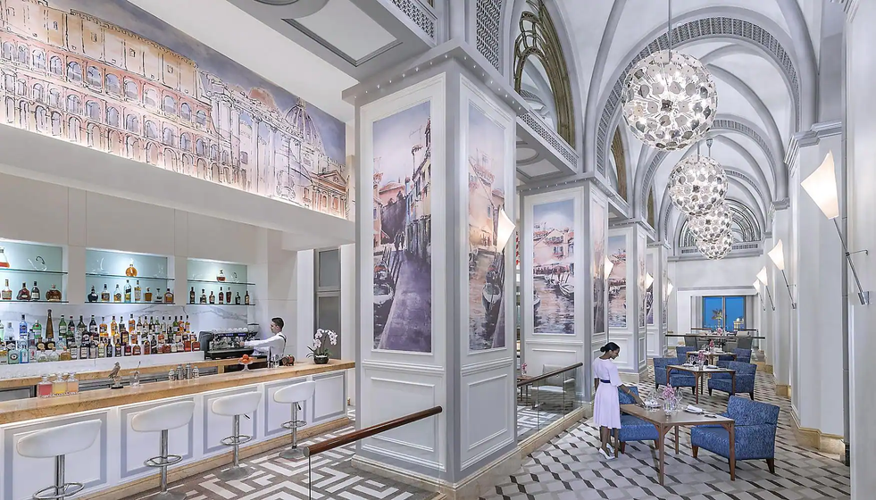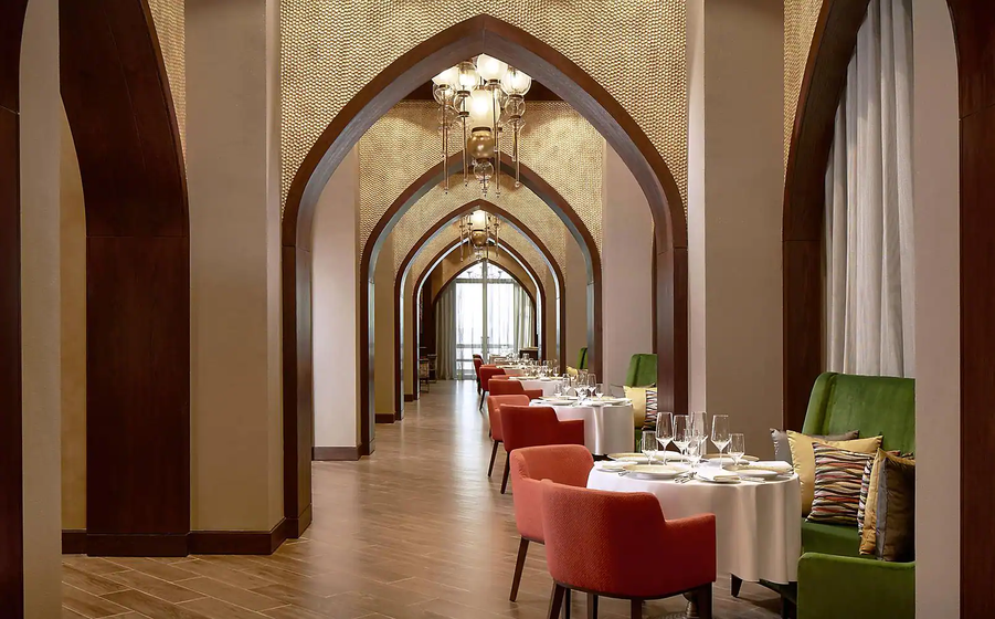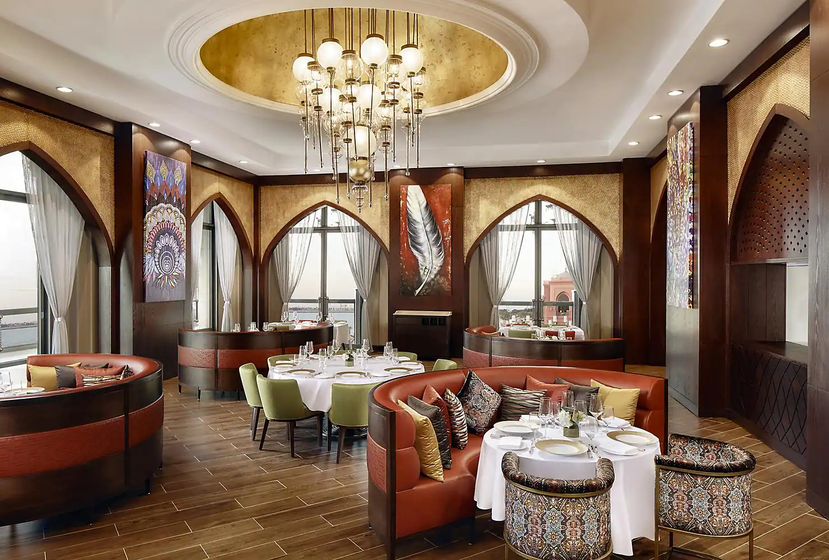 Vendôme餐厅是一家充满活力的全天餐厅,提供多国美食,餐厅使用时令和最新鲜的当地农产品,在现代宽敞的氛围中为所有年龄段的客人提供用餐体验;BBQ Al Qasr让享受户外美食的食客在海滩上的星空下品尝丰盛的美食;Hakkasan Abu Dhabi是《米其林指南》阿布扎比首秀中米其林星级的获奖者,刺绣的家具和大理石的中式风格,配上招牌的鱼子酱北京鸭和脆皮鸭沙拉,让人感受到中餐无与伦比的魅力;Martabaan by Hemant Oberoi则将带来第一位被提名为世界美食俱乐部的印度厨师Hemant Oberoi的创新印度美食,阿拉伯湾晶莹碧蓝的海水和酒店码头的壮丽景色,是印度神秘风味和创意的完美补充;希腊风格餐厅Cascades因其毗邻的水上公园内的瀑布和海洞而得名,在郁郁葱葱的棕榈树、鲜花和鸟鸣声的环绕下,客人可以在继续沐浴阳光之前,享受来自大海的清凉微风;米其林星级餐厅Talea餐厅的菜单则诠释了意大利各地家庭传统上熟知和珍视的经典菜肴,餐厅将米兰经典菜肴的传统技术与创新优势融合在一起,呈现出一种诱人的烹饪诠释。除此之外,还有Le Café under the dome、Las Brisas、Café Fountain、The Lebanese Terrace,都可以带给您各不相同的用餐体验。