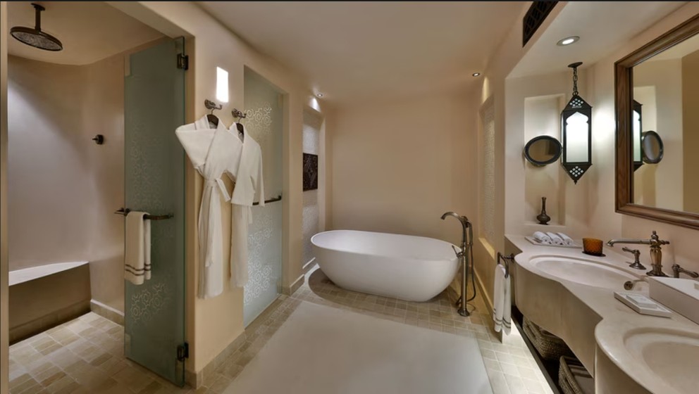 置身于沙漠氛围十足的Terra Secca餐厅,除了能尽情享用美味菜肴,还能在傍晚时分漫步在阿拉伯骏马环绕的露天花园,浪漫的基调油然而生。此外,在 Al Mesayan餐厅的屋顶酒吧里边品鉴鸡尾酒和阿拉伯水烟,边欣赏阿拉伯沙漠的迷人美景,两相得宜。同时,Bait Al Hanine 阿拉伯餐厅也提供了优美的就餐环境,还能一品从阿拉伯海湾到黎凡特地区的特色经典菜肴。