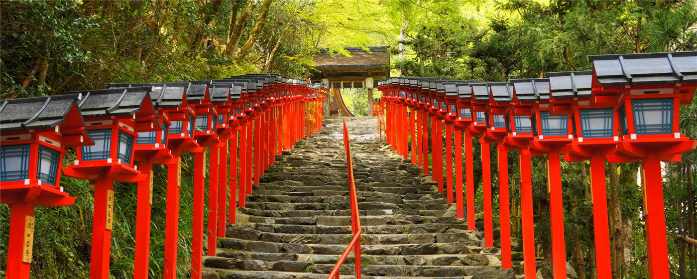 在京都的众多神社中,贵船神社远离京都中心,坐落于山林中最独具一格的地方。参道两侧沿着阶梯,设有玄妙的红色灯笼,无论春樱、红叶还是白雪,风景都尤为动人。