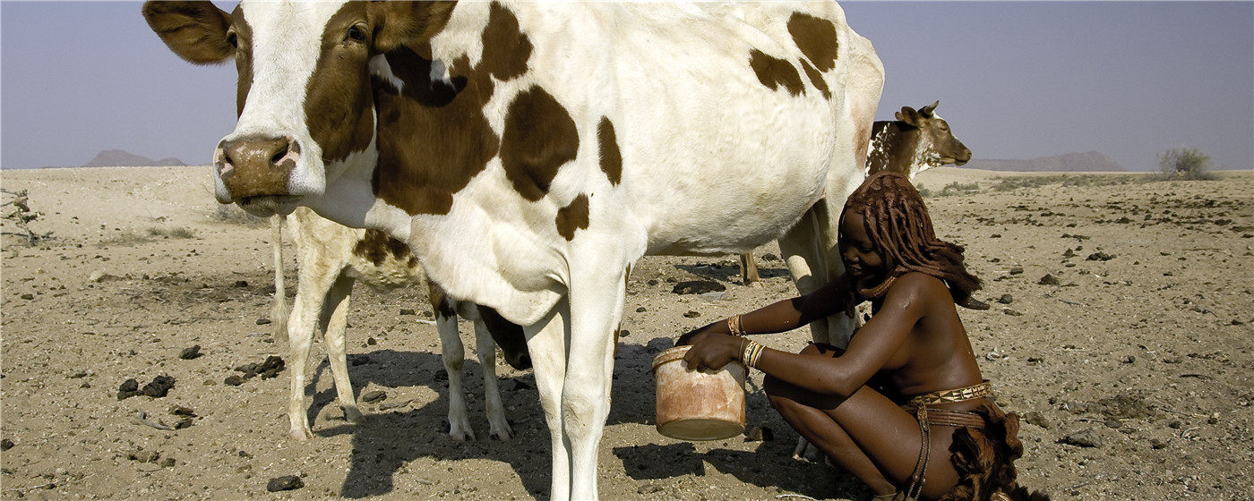 辛巴族——纳米比亚的一个原始社会族群。他们是非洲最后保持原始生态的民族,为了维护他们的传统,他们选择了退守丛林,栖身于纳米比亚边远的原始环境中。这个部落到今天仍然维持着500年前的生活方式与习俗,其独特的原始人文景观令人惊艳。他们终年用红土混合黃油涂抹在皮肤上和头发上,因此称之为红泥人。
