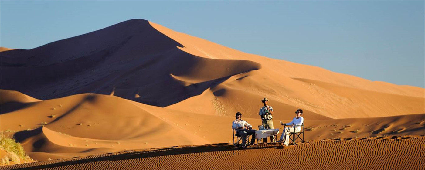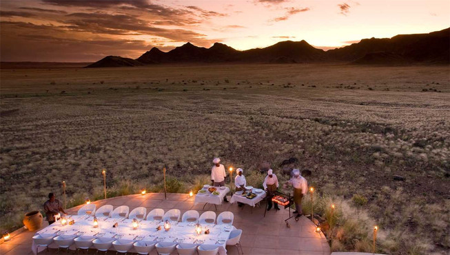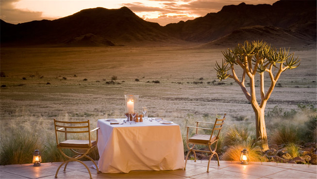 在纳米比亚,原始部落与现代文明激烈碰撞,狂野的大地与奢华的酒店相互依存,比如晚上围坐在暖暖的篝火旁,手边是气泡涌动的香槟,头顶上涌动的是浩瀚繁星,这种体验让入住野奢酒店成为旅行极为重要的一部分,除了住宿用餐以外,酒店与美景相得益彰的呼应,让您更能深刻感受到纳米比亚狂野中的奢华。