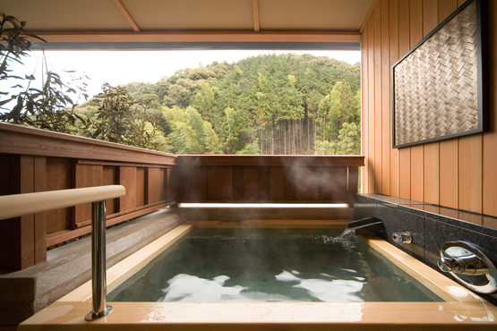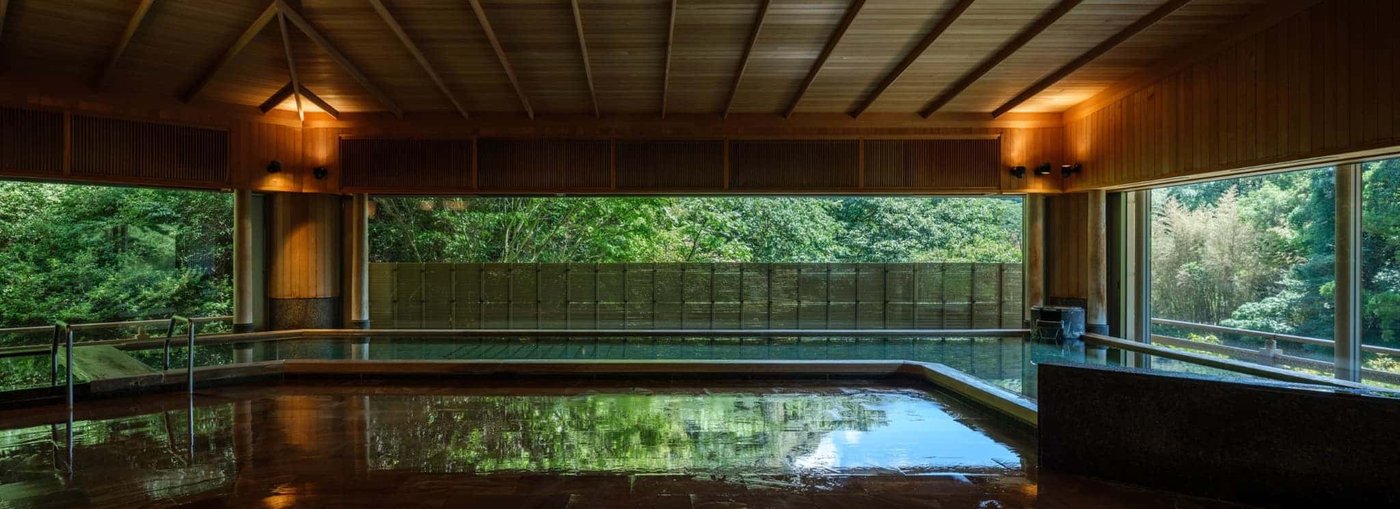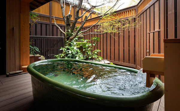 酒店所处的长门汤本温泉兴起于室町时代(1427年),这一碱性单纯泉对缓解神经痛、筋肉痛、关节痛等症状多有裨益。酒店的一楼和二楼均设有多处室内、外景观风吕,您可以或卧或坐着赏景、泡汤,而位于大堂酒廊旁的足汤则是边观瀑布、听水声,边喝饮品之地。