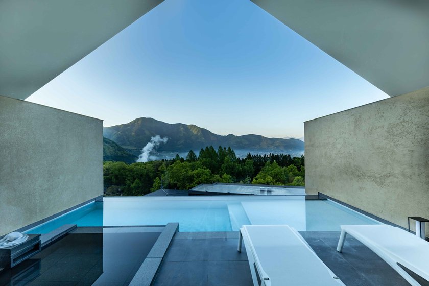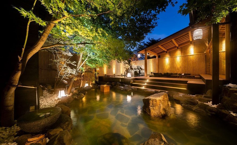 酒店整体呈现传统和式设计风,以风吕、庭园、回廊组成,这里有12间不同布局的独栋私汤别墅,各有内汤和露天风吕。除了客房内的独立风吕,还设有四个露天风吕,此外,酒店还设有一个名为「天空之桧风吕」的独立风吕,风吕位于高4米的位置,客人会有在天空浸浴一样的奇妙感觉。
