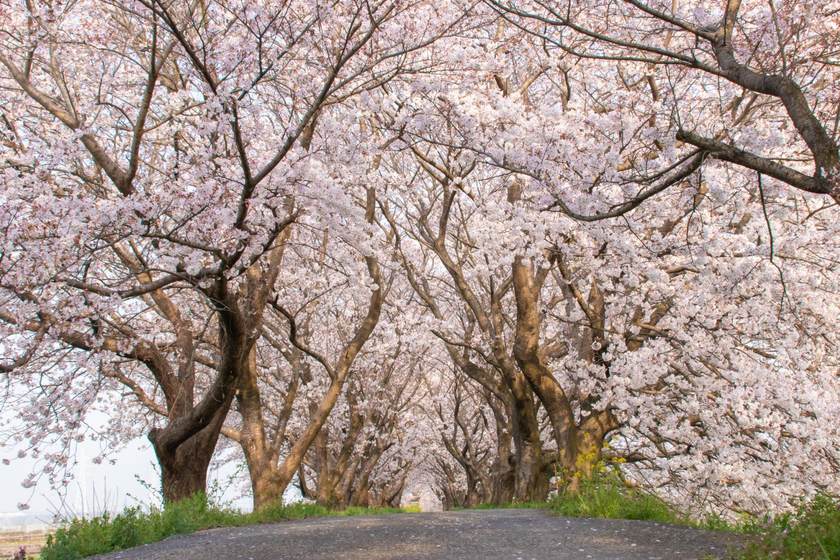 九州樱羽如醉,漫山遍野的樱花,迎着充沛的地热与太平洋上的暖流绽放,从河畔一直绵延到海岸,涌动成一片无限明媚的早春花海。浮羽流川樱花隧道、竹田枝垂樱里、一心寺樱云海祭等都是九州赏花必到之所,山深未必得春迟,处处山樱花压枝,粉红色花朵翩翩飞舞,在最美的瞬间飘然羽化,就像在观赏新海诚的《秒速5厘米》时,心中的感动已不是言语可以形容。