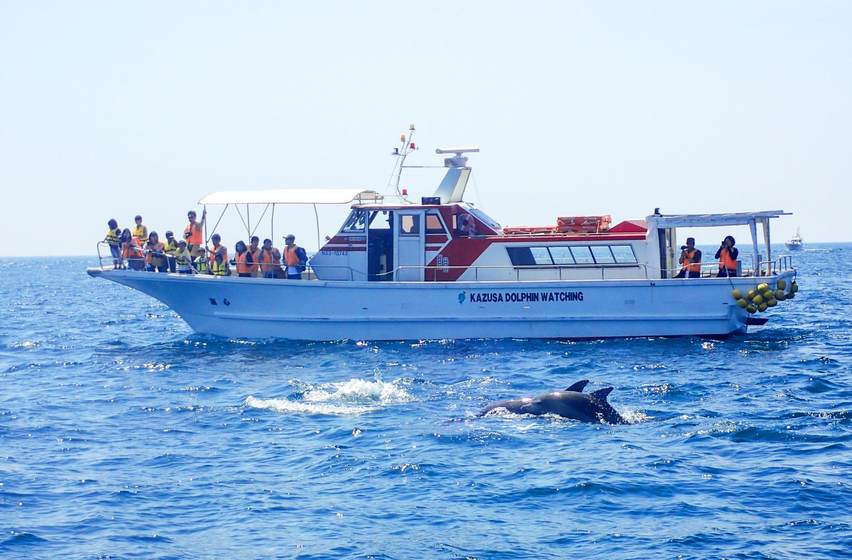 B:出海观海豚(约90分钟)位于长崎县岛原半岛南端的早崎海峡中生活着大约200头野生海豚。海豚群常年在此区域活动,海豚在闪闪发光的蓝色大海中舒展游动,不禁让人欢呼,感动之情油然而生。近距离感受野生海豚,来一场令人兴奋不已的巡游吧。