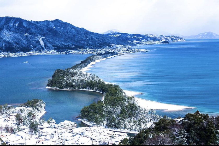 下午:前往有如龙上青天之称的天桥立(约2小时车程),是一处极其特殊的自然景观,因为地壳推挤在海上形成一个沙洲地形。其与广岛的宫岛及宫城的松岛并称为日本三景。搭乘缆车到伞松公园,可将天桥立最美景色尽收眼底。