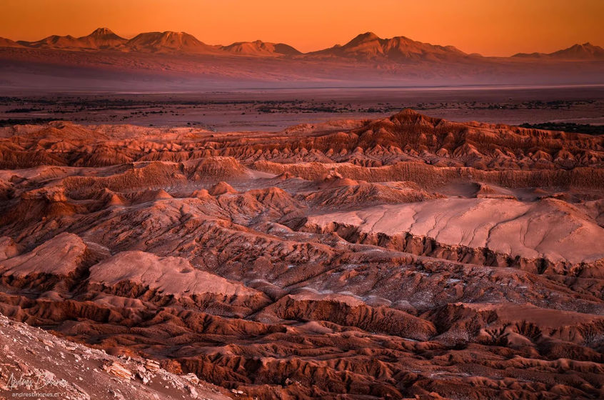 智利阿塔卡马沙漠是世界上最干燥的非极地沙漠,位于智利北部,安第斯山脉与太平洋之间。这里拥有外星般壮丽景观:盐湖、间歇泉、火山、峡谷和震撼人心的璀璨夜空。