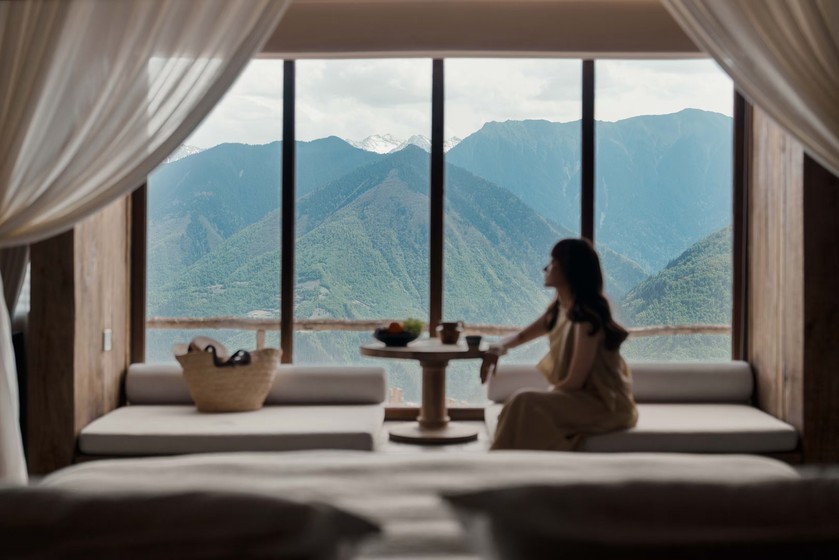 入山即是归客,酒店落位于原百年藏寨原址,静谧避世,静默对望的藏地神山如色地每年10月至次年6月为积雪期,常年可偶遇云海胜景,如坠仙境。酒店2800米的海拔可远眺岷山雪线与松柏森林交相辉映。入店便会被献上纯白哈达,这是对来客最热情尊贵的仪式。还能体验藏族传统祈福仪式,看煨桑台前青烟升腾,五彩经幡系上冷杉枝头,撒隆达的刹那,印满经咒的风马纸纷扬如雪。