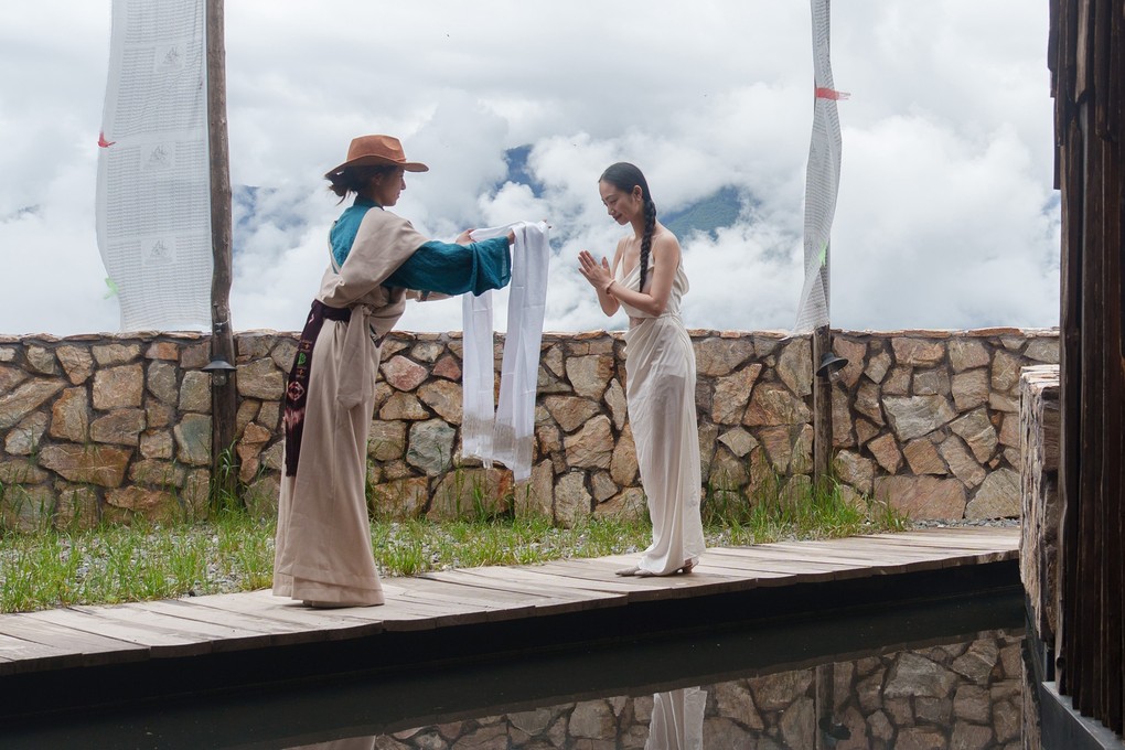 远道而来的客人们经过山道慢慢攀升至山顶,早已准备好的藏式最高规格欢迎仪式,让人一下子感受到群山的环抱,献上如雪山般洁白的哈达,享用一杯刚刚出炉的酥油茶,你的九寨之旅从此开始。