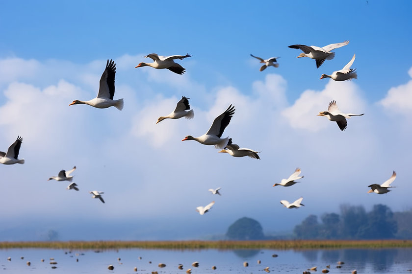 咏归川·武宁西海所在的修河水域隶属于中国最大淡水湖——鄱阳湖水系,这里是亚洲最大的候鸟越冬地。每年秋末冬初,自俄罗斯西伯利亚、蒙古、中国东北西北等地飞来的数十万只候鸟停留于此,直到翌年春逐渐离去,是名副其实的候鸟天堂。