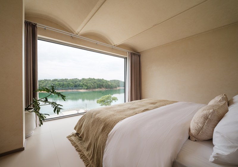“ 双子”型酒店咏归川·武宁西海于西海湖畔有「临海私岛」与「夯土野宿」两处落址: