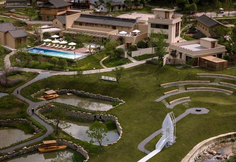 既下山致力于以东方哲学定义奢华度假,咏归川则是依托自然的环境,进行自然的空间设置,打造一处悠闲轻松的家庭式院落。