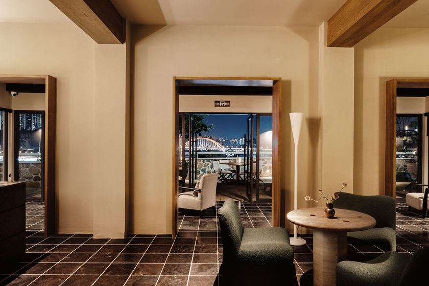 百年建筑衍生的管家式私密酒吧, 安放“城中远游 ”的故事与心绪。旅途中的惬意时刻, 在这里找到生长的空间。 夜幕降临, 长江上的点点灯光照亮城市。光影交错时, “新天地 ”与“旧世界”在碰撞中交融, 静坐崖边, 心灵的尽头, 咫尺眼前。