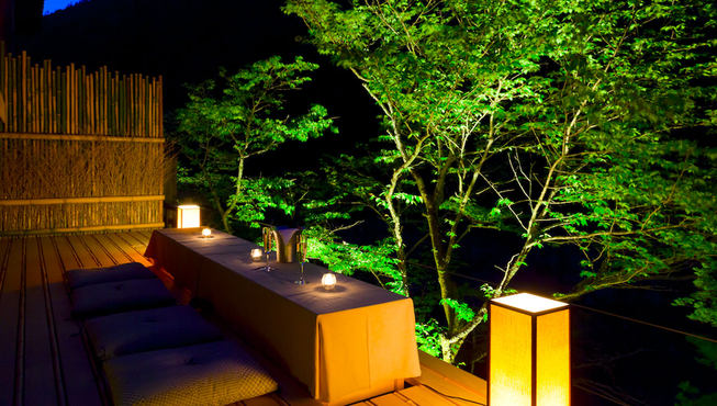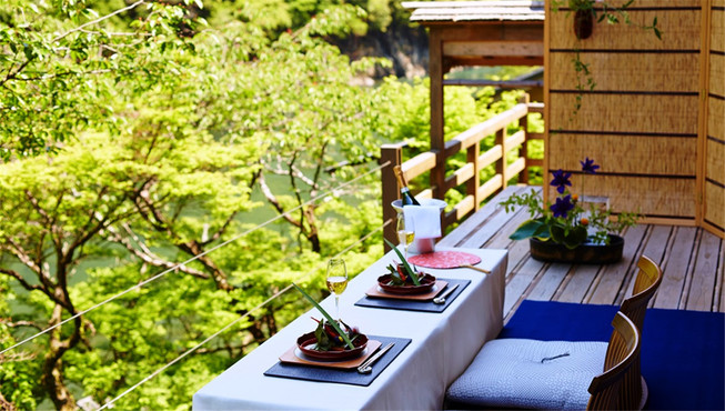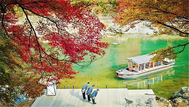 由百年贵族私邸改建而成的京都虹夕诺雅坐落于岚山保津川陡峭的河岸边,入住客人需从著名景点渡月桥处登上小舟,在沿途美景陪伴下乘船抵达。酒店坐拥岚山四季变幻的自然绝景,是赏樱花、观红叶不可多得的上佳之选。酒店内拥有挑高天花板和大窗户的25间和洋室客房全部面朝保津川,您足不出户即可欣赏保津川溪谷美景。