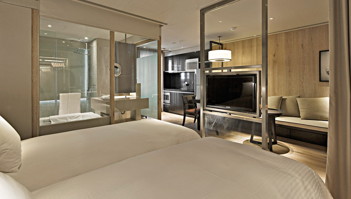 | 室内空间由名设计师陈瑞宪悉心构思,每一方吋间都是体贴旅客的深入琢磨,予人实实在在的安顿感。 |