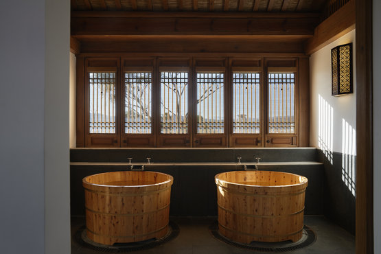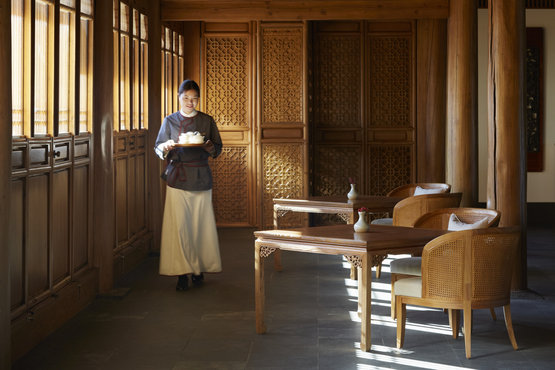 酒店仅有35间套房,都分布于几处传统纳西院落中,室内的建材和装饰遵循就近原则,一律源自云南当地——精巧绝伦的纳西刺绣、刻有花卉禽鸟的东巴木雕、香格里拉的云南松聚聚一堂,与安缦招牌当代派榆木家具相映成趣。客房内还设有Jim Thompson定制的长榻和靠枕、从德国定制的KALEDWEI水疗浴缸、并配置全套Ploh寝具和浴袍。