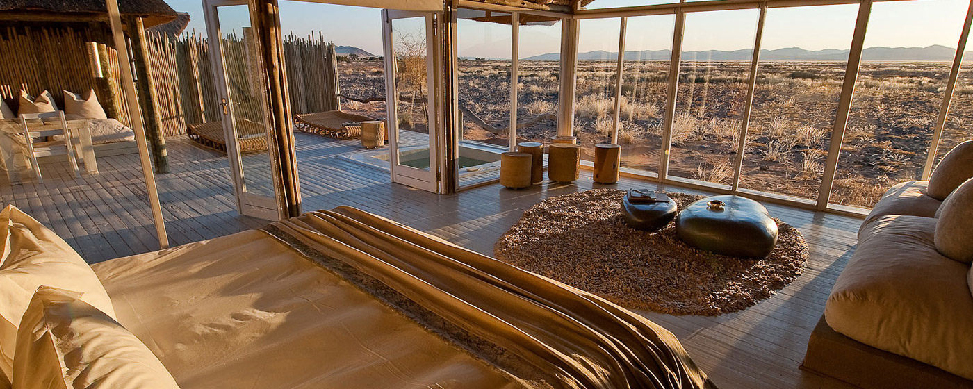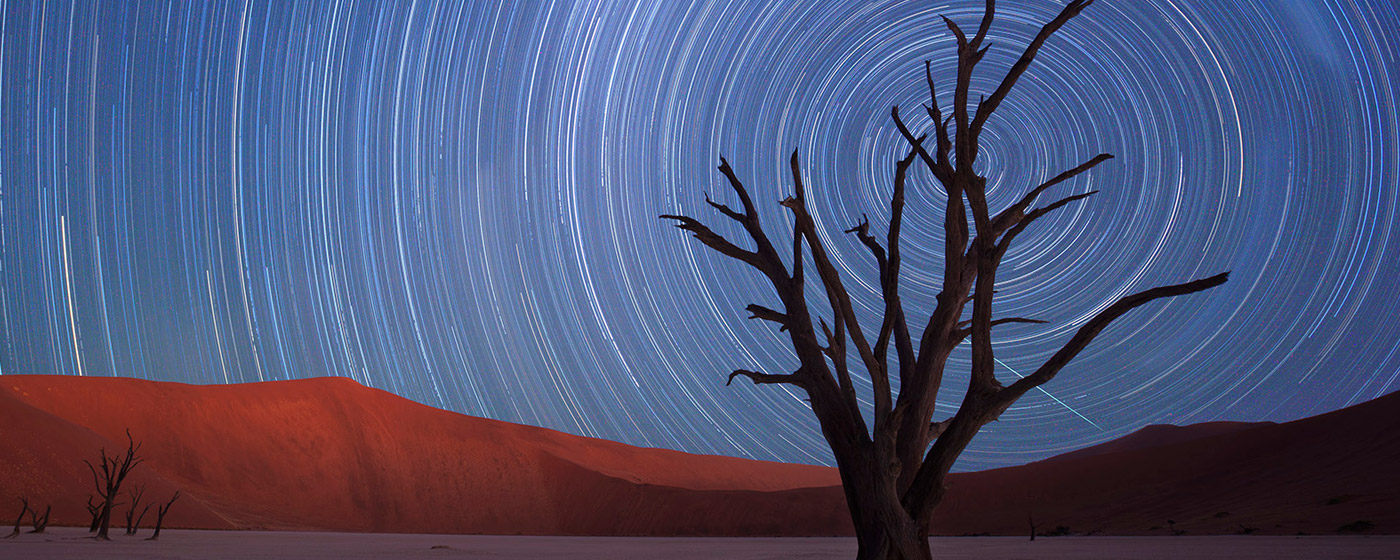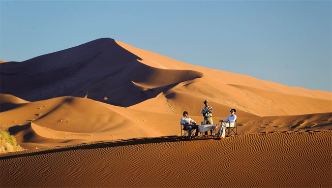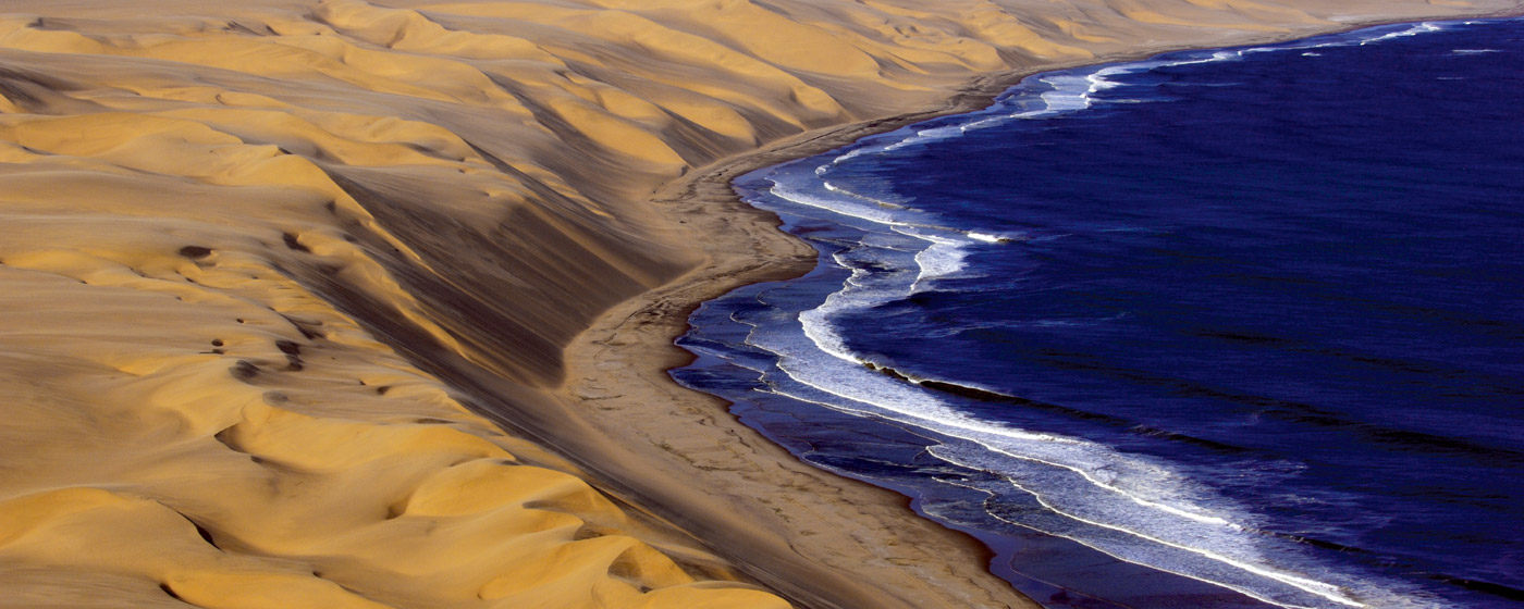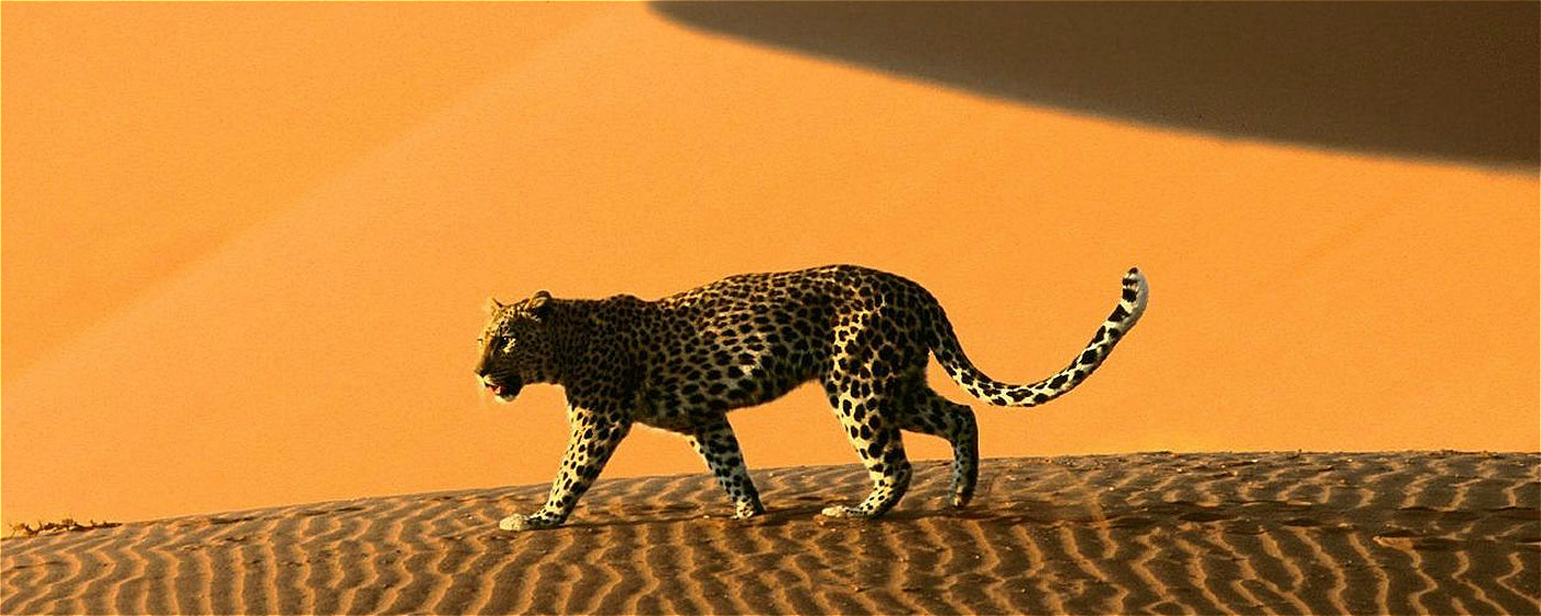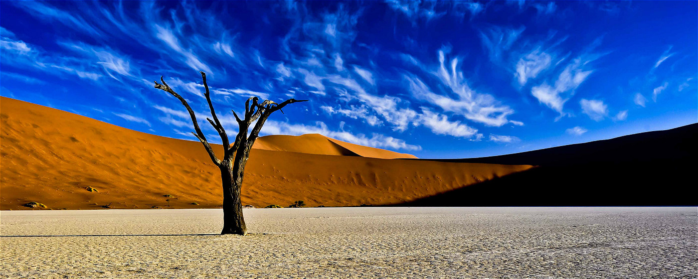 纳米比亚(Namibia)意在赫雷罗语中意为“空旷的大地”,这是一片位于非洲尽头的土地,茫茫大漠与蔚蓝海洋在此相遇。来到苏丝斯黎(Sossusvlei),踏进世界上最古老的纳米比沙漠(Namib),登上地球上最高的沙丘,远古的呼唤从旷野传来,令人思维无限延展的空间。随着太阳的轨迹和光线的变化,沙流的颜色也不断的变化,配合着沙漠里形态怪异的枯树和沙丘给人一种宛如隔世的感觉。在沙漠中偶遇寻找水源的鸵鸟和剑羚,或目睹死亡谷(Deadvlei)干涸的泥土与一棵棵孑然矗立的干枯骆驼树干。仰望夜空,星罗棋布,银河在眼前展开,真实地感受宇宙画卷的震撼。