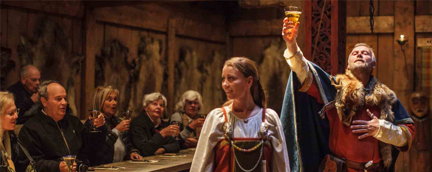 最后我们将前往罗弗敦维京博物馆,这座博物馆坐落在全长83米的复古维京长屋里,其原型是建于公元500年左右的罗弗敦群岛维京人酋长长屋,是目前挪威最大的维京式建筑。博物馆里以场景式的展览方式逼真地重现了古代维京人的社会、生活和历史,好像昨天还有维京人在屋子里生活一样。工作人员还会装扮成古代的维京人进行介绍和表演。晚上您将在博物馆的“酋长之家”参加“维京人首领”和“女主人”的晚宴,享用维京风情美食,聆听古老的音乐和维京传说,品尝一千年前维京人喜爱的羊肉汤,仿佛穿越时光回到了北欧的部落时代。