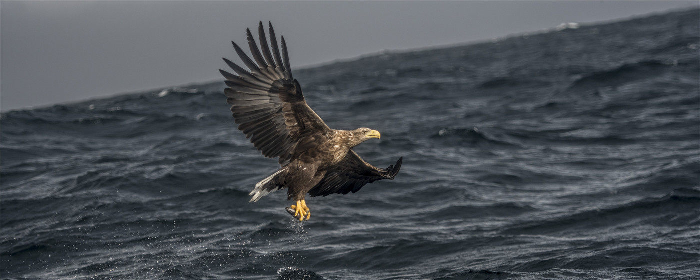 挪威北部还是欧洲白尾海鹰数量最多的地方。挪威整个海岸沿线地带几乎都有白尾海鹰活动的踪迹,挪威的海鹰甚至还被引入苏格兰,用于繁殖这种雄伟的鸟类。我们将坐船穿越世界上最强的大涡流之一,来到多年来一直有着王者风范的海鹰经常出没的地方,给翱翔在空中的海鹰喂食。