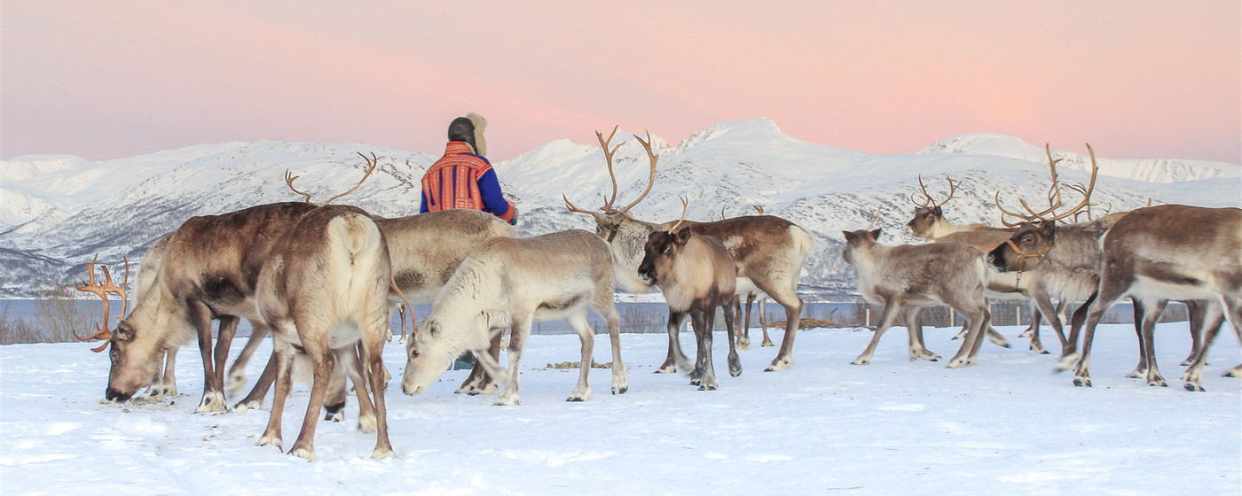早餐后乘车前往郊外探访萨米人。萨米人是北极圈内的原住民,居住在挪威、瑞典、芬兰北部的拉普兰地区,数千年来一直与冰雪、荒原、极光、驯鹿为伴,是欧洲最后的游牧狩猎民族,至今仍然保留了古老的传统习俗。我们将走进萨米人的帐篷,听它们讲故事,聆听萨米族吟诵自然的古老音乐与歌谣。驯化与饲养驯鹿是仍生活在野外的萨米人维生的方式,我们将在萨米人的营地与这种可爱的极地动物亲密接触,喂食驯鹿,并乘坐驯鹿雪橇驰骋于斯堪的纳维亚北部的荒原中,感受极北之境的原始与孤傲。