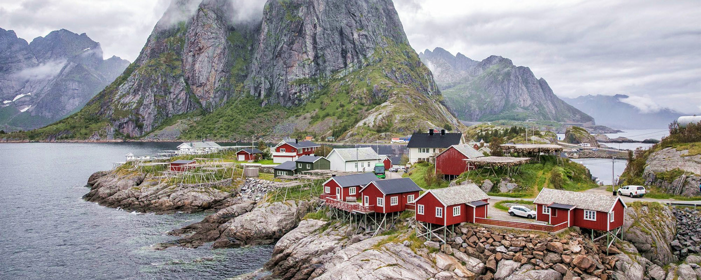 而隐藏在峡湾的各个角落里,则是许多宁静优美的小渔村,它们包括有“挪威最美村庄”之称的雷讷,与高山和海面相依的哈姆馁伊村,以及有“罗弗敦的威尼斯”美誉的亨宁斯维尔。