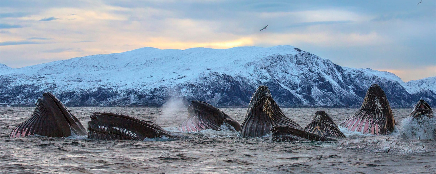 每年10月下旬到1月下旬是座头鲸和虎鲸光顾特罗姆瑟海域的季节,大大小小的鲸或成群结队,或单独游走。