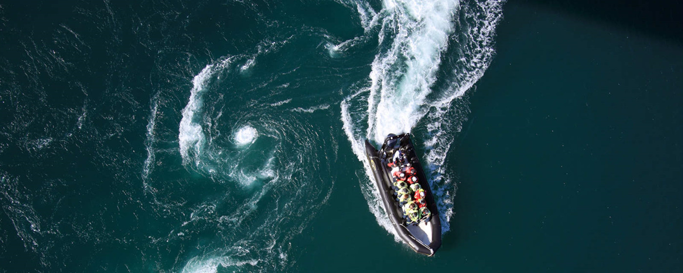 乘坐游艇体验博德著名的萨特大漩涡,萨特漩涡出现在博德附近的峡湾中,因为峡湾水道狭窄,海水涨潮水量猛增时,海水涌入峡湾剧烈摩擦撞击产生无数的漩涡。