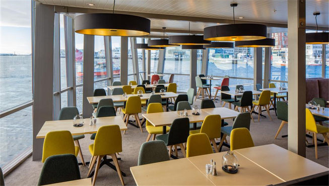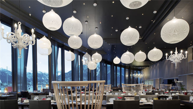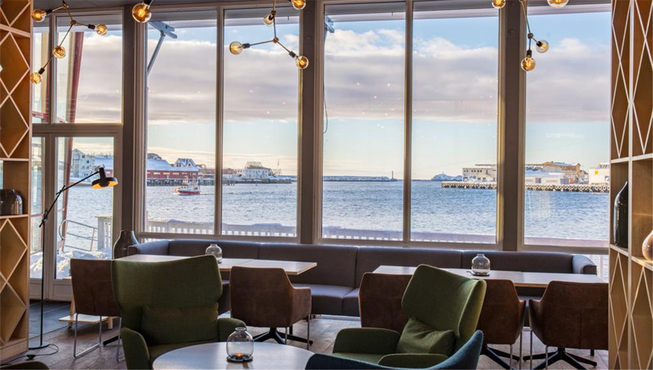 酒店的Roast Bar酒吧位于水边,享有特罗姆瑟大桥和著名地标北极大教堂的美景。