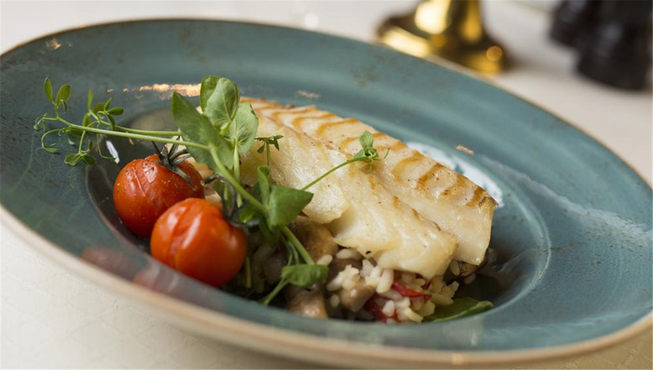酒店内的Børsen Spiseri餐厅供应当地鱼类特色菜肴。酒店还设有酒吧和露台,以及Gunnar Berg艺术画廊。