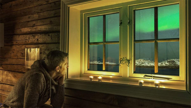 运气好的时候,您甚至不用走出房门,也能看到极光的身影。