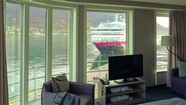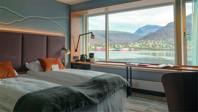 斯堪迪克伊萨维斯酒店(Scandic Ishavshotel)位置得天独厚,一直延伸到特罗姆瑟港临近的海中。酒店共有214间客房、套房,2016年已全部装饰一新。