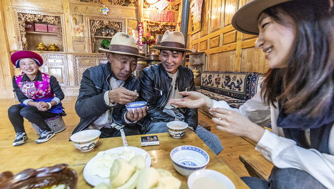 下午在村庄的藏民家参观传统藏式民居,了解藏式碉房民居特色和藏家日常生活,品尝牦牛酸奶、酥油茶、糌粑、藏式麻花等特色藏小吃。也可以亲自尝试手打酥油茶、手捏糌粑,品尝自己的“劳动成果”。与热情淳朴的藏民聊聊家常,度过一段轻松别样的时光。