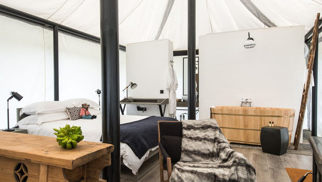 桃园藏居共有五个藏式帐篷,灵感来自藏族的游牧帐篷,让宾客就算住在帐篷内,也能享受犹如房内的体验。47平方米,每个帐篷都带有现代化设施,包括附有电热毯特大床、 壁炉、独立浴室。