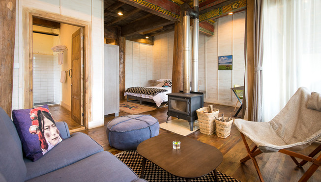 藏式套房隐匿在那一栋150年的老宅之内,仅有一套,47平方米配置一张大床,房间融入了藏式装饰和现代设计,并设有藏式壁炉、独立卫浴间、私人小客厅。