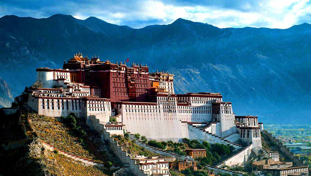 布达拉宫,世界上海拔最高,集宫殿、城堡和寺院于一体的宏伟建筑,也是西藏最庞大、最完整的古代宫堡建筑群。位于拉萨市区西北的玛布日山上,最初是吐蕃王朝赞普松赞干布为迎娶尺尊公主和文成公主而兴建。于17世纪重建后,成为历代达赖喇嘛的冬宫居所,为西藏政教合一的统治中心。