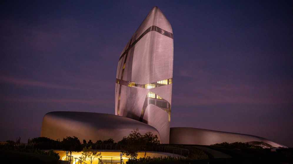 2017年,阿卜杜勒阿齐兹国王世界文化中心开业,迅速成为这座城市的一张名片。它设计独特前卫——外立面采用了总长350公里的钢管,整体状如沙风打磨光滑的含油巨石,更是因为其剑指“沙特阿拉伯首个文化全方位综合体”的雄心壮志。简而言之,这座建筑非常奇特,只有亲眼看到,才能感受到它的壮阔。